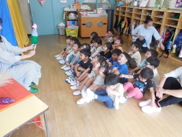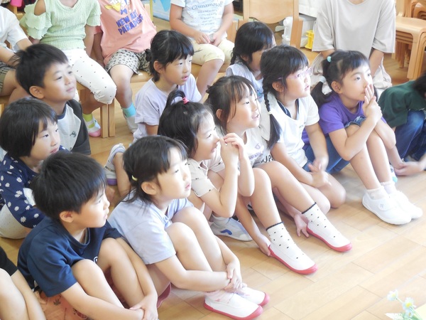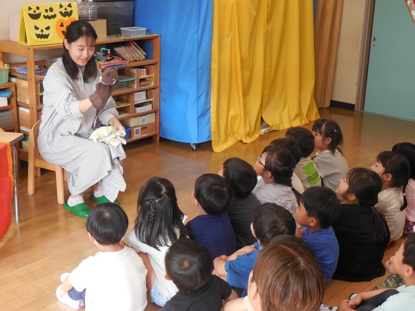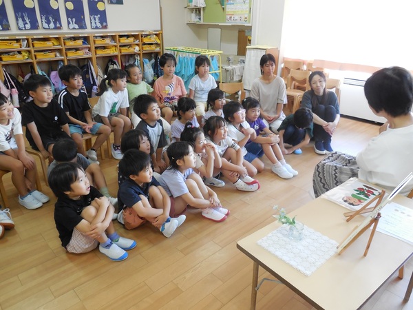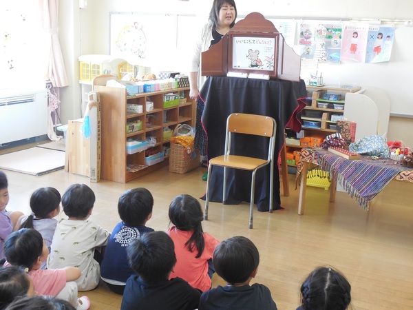 思いやり絵本読み聞かせ 石川こども文庫の皆さんが絵本の読み聞かせに来てくださいました。手遊びやわらべうたで心が和み、絵本や紙芝居では、どんどんお話しの世界にすいこまれ、ドキドキ、ハラハラ、ニコニコしながら楽しい時間を過ごすことができました。石川こども文庫の皆さん、すてきなお話しを準備していただきありがとうございました。 2025/10/15