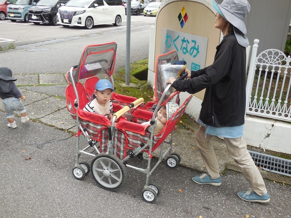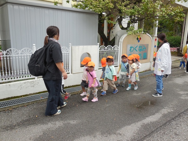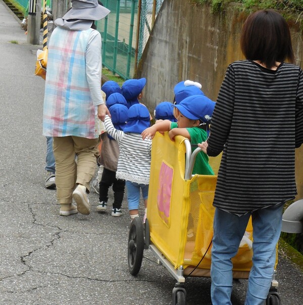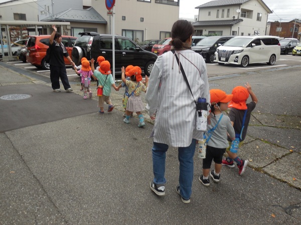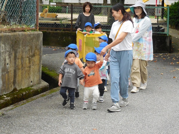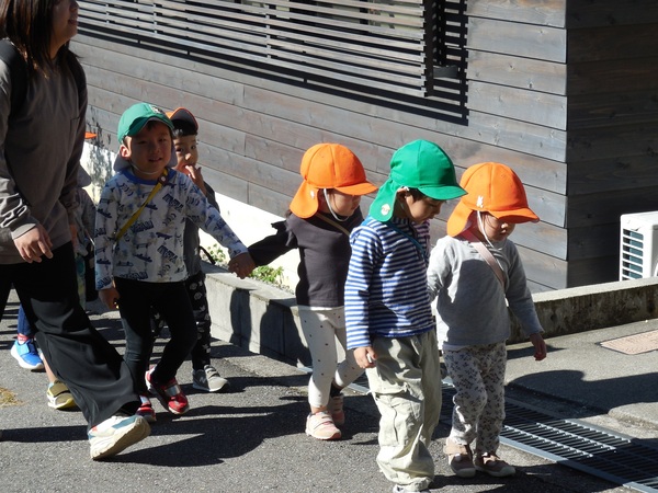 お散歩レッツゴー 3歳未満児さん(もも組、うさぎ組、ひよこ組)がお散歩にレッツゴー。園の前の道路の落ち葉を見つけて「葉っぱがいっぱい」と声をあげていました。ちょっぴりひんやりの風をあびながら元気にお散歩に出かけていきました。今日はどんな秋を見つけてくるのか楽しみですね。 2025/10/20