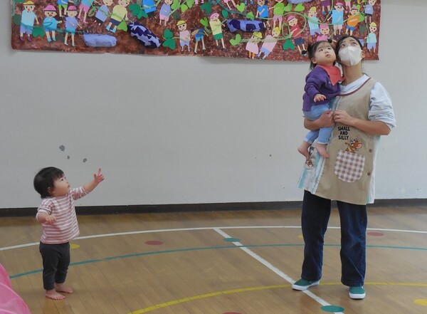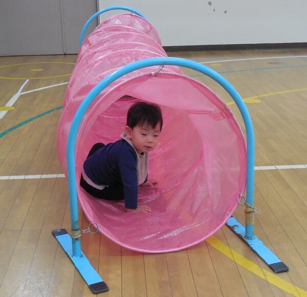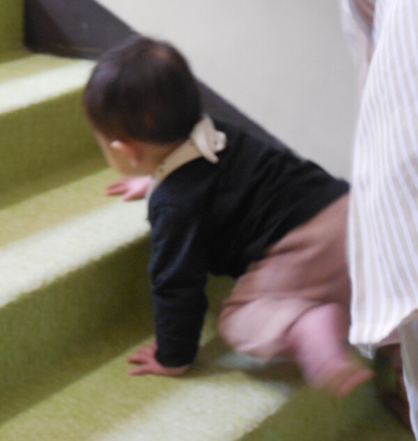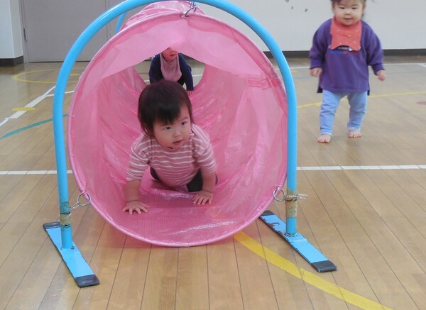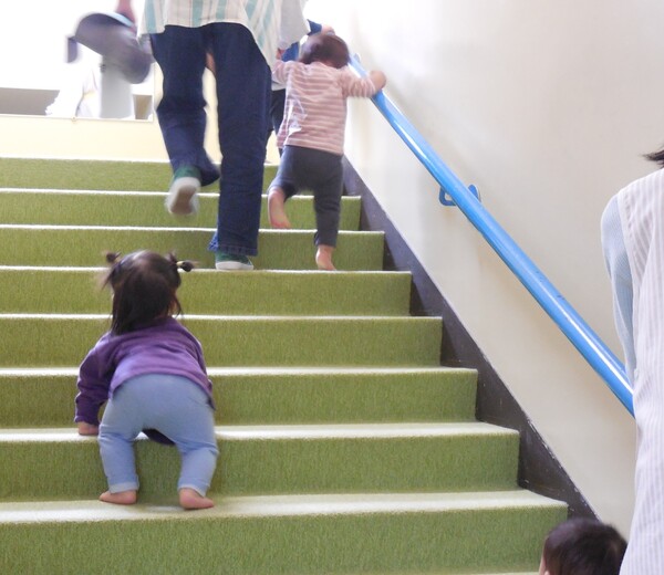 自由に動けるよ ついこの前まで抱っこされていたひよこ組さんでしたが、ハイハイをしたり歩いたり、自分の力で思うところに動けるようになってきています。高い高い階段もヨイショ、ヨイショとたくましく乗り越えていきます。ひよこ組さんの成長のスピードには驚かされますね。 2025/10/28