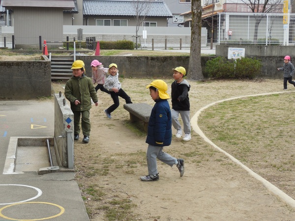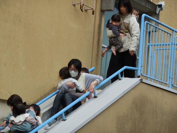 避難訓練 今年度最後の避難訓練。外の避難用滑り台の1つが使えないという急な想定にもかかわらず、放送や先生のお話しをしっかり聞き、落ち着いて行動する子どもたちと先生方。これまでの訓練の積み重ねを感じました。園児全員をけがなく危険な場所から安全に非難させねばならないという先生方の強い使命感と真剣な訓練への取組の賜物ですね。 2026/03/13
