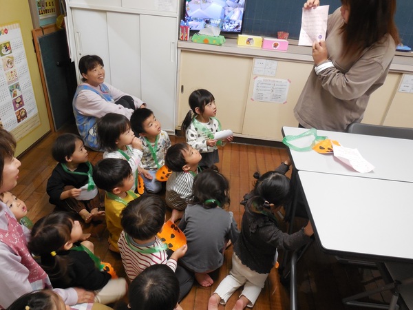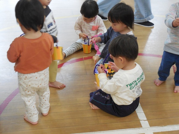 ハロウィン キャンディや宝物、かぼちゃの顔のパーツ探しやゲームなどハロウィンのお祭りをみんなで楽しんでいました。探し物を見つけた子どもたちはとっても満足そうな顔をしていました。どこからともなく「トリック オア トリート」の声が聞こえてくるにぎやかな一日でした。 2025/10/31