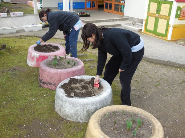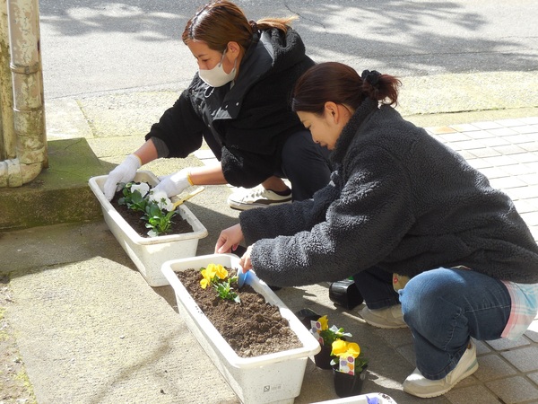 卒園式に向けて 早いもので卒園式まで、10日あまり。今日の午後、保育士さんたちは、パンジーの苗を植えたり、苗のポットの装飾をしたりと卒園式に向けての準備をしていました。小さなころからの子どもたちの成長を思いながら、とっても優しく植えていました。寒い中、ありがとうございました。 2026/03/12