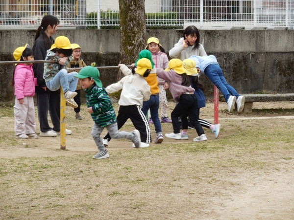 公園での最後の遊び! 今週土曜日に卒園式を迎えるまつ組さん。水曜日は、お天気も良く、公園での最後の時間となりました。鬼ごっこや鉄棒、かくれんぼや小さな子と遊んだりと思い思いの時間を過ごしていました。この場所で友だちと過ごした楽しい時間はかけがえのない宝物になりましたね。まつ組さん、これからもいっぱい体を動かして友だちと遊んでくださいね。 2026/03/19