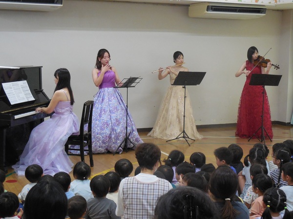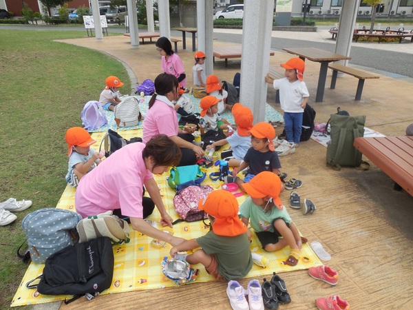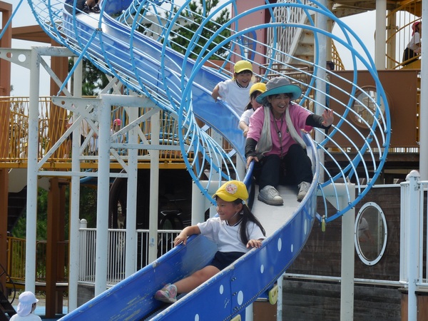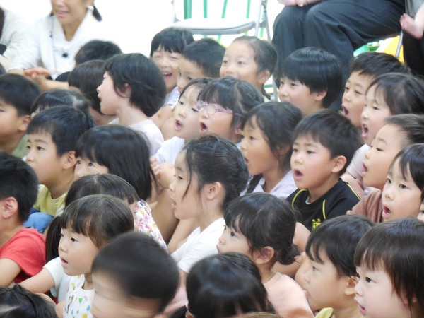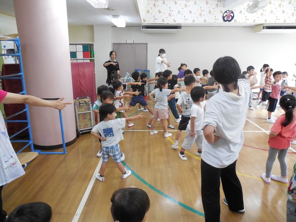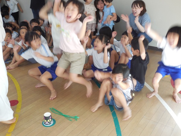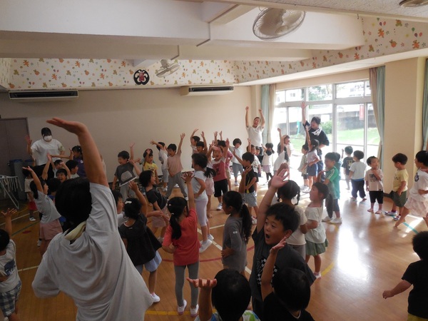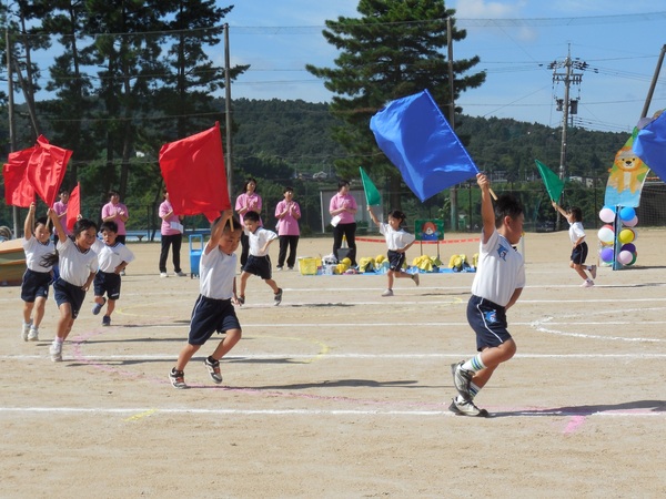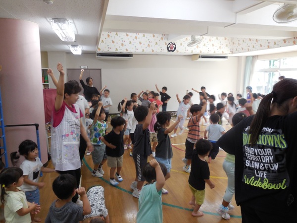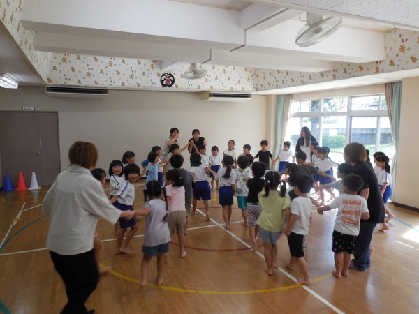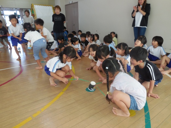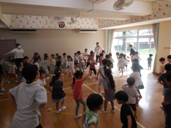 プログラム7番うめ組さんのかけっこ。一人ひとり大きな声で返事をして「よ〜いドン!」ゴールに待つ先生めざして、力いっぱい走りました。ゴールした時の子どもたちはとってもいい表情をしていました。続いて、ふじ組さんのダンス。テンポの速い曲ですがみんなで揃えて元気にダンスしました。ポンポンも力強く振られ「最強のダンス」となり、たくさんの元気をもらいました。最後は、まつ組さんのリレー。最後まであきらめずに全力で走り友だちにバトンをつなぐまつ組さん。差がどんどん縮まりハラハラドキドキの白熱のレース。「がんばれ、もう少し、追いかけて」と応援に夢中になり写真を撮るのを忘れてしまいました。運動会の最後に素晴らしい走りを見せてくれたまつ組さん素敵でした。全種目が終了し、父母の会からのご褒美をもらい満足そうな子どもたちでした。