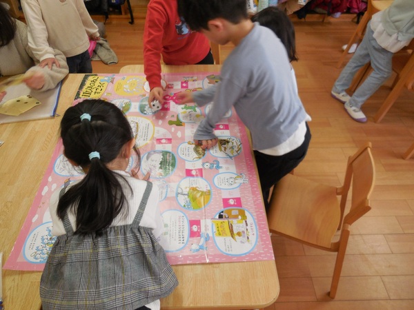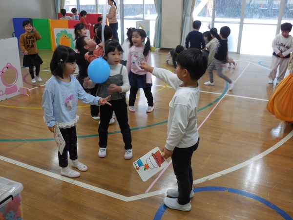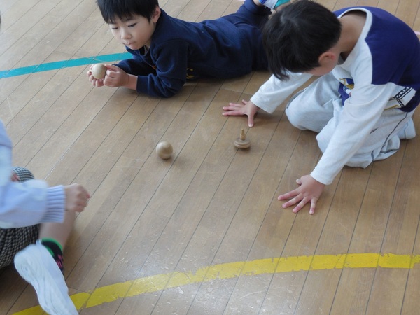 お正月遊び うめ組さん、ふじ組さん、まつ組さんは、朝の自由遊びの時間、お正月遊びをしています。すごろくやかるた、風船を使ったアイディア羽根つき、お皿にのせようと何度もチャレンジするけん玉、ひもをぐるぐる難しいコマ回し等、笑顔いっぱいで楽しんでいます。「やったあ、できたあ」と成功した時のとびっきりの笑顔がまぶしいです。 2026/01/06